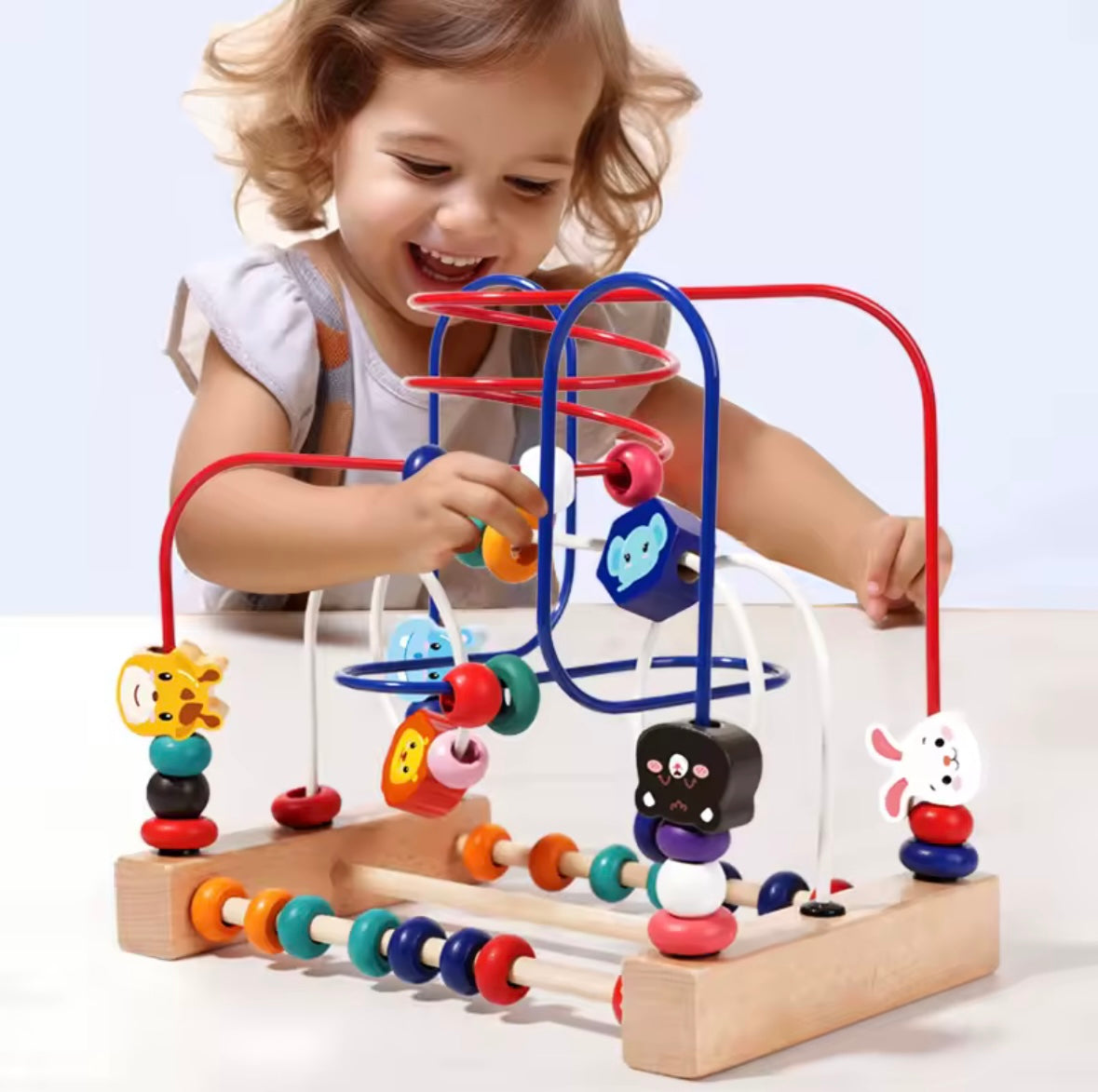 כולל חרוזים צבעוניים ומרקמים מגוונים שמושכים את העין, משפרים ריכוז ותשומת לב, ומעודדים זיהוי צבעים וצורות בצורה טבעית ומהנה.
